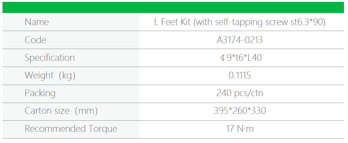 ในชุดมาพร้อมกับ ตัว L feet สูง 80 mm. + สกรู 6.3x90 mm + ยางกันรั่ว