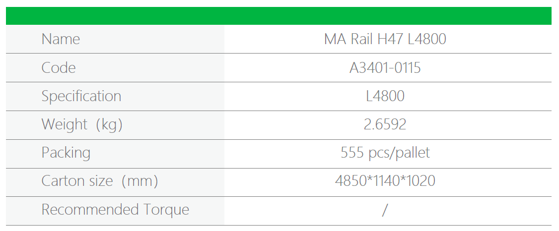 MA Rail ยี่ห้อ MiBET สำหรับเป็นโครงสร้างรองรับแผงโซลาร์ ตัว rail ขนาดความสูง 47 mm. และความยาว 4.8 เมตร